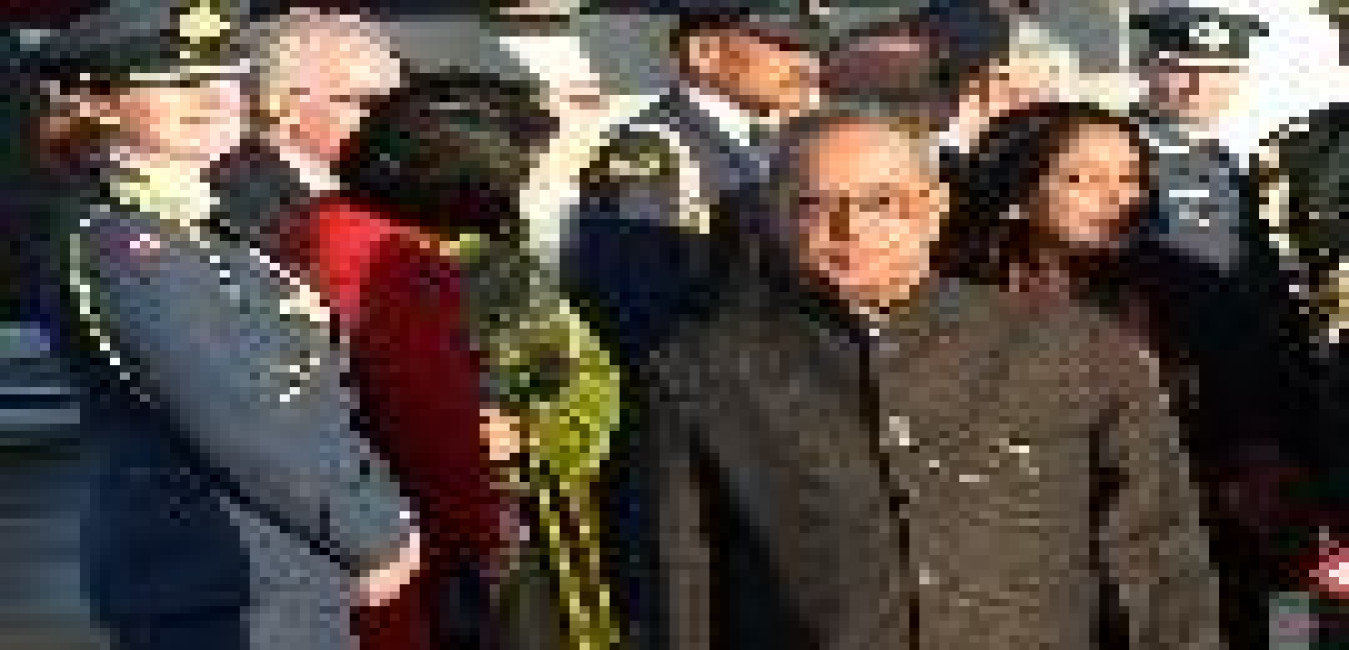 The President of India, Shri Pranab Mukherjee being welcomed by the Mayor of Ullensaker, Mr Harald Espelund at Gardermoen Airbase at Oslo in Norway on Oct 12, 2014