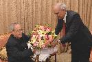 The President of India, Shri Pranab Mukherjee meeting with Shri I.Y.R. Krishna Rao, at Rashtrapati Nilayam, Bolarum, in Secunderabad on July 07, 2015.