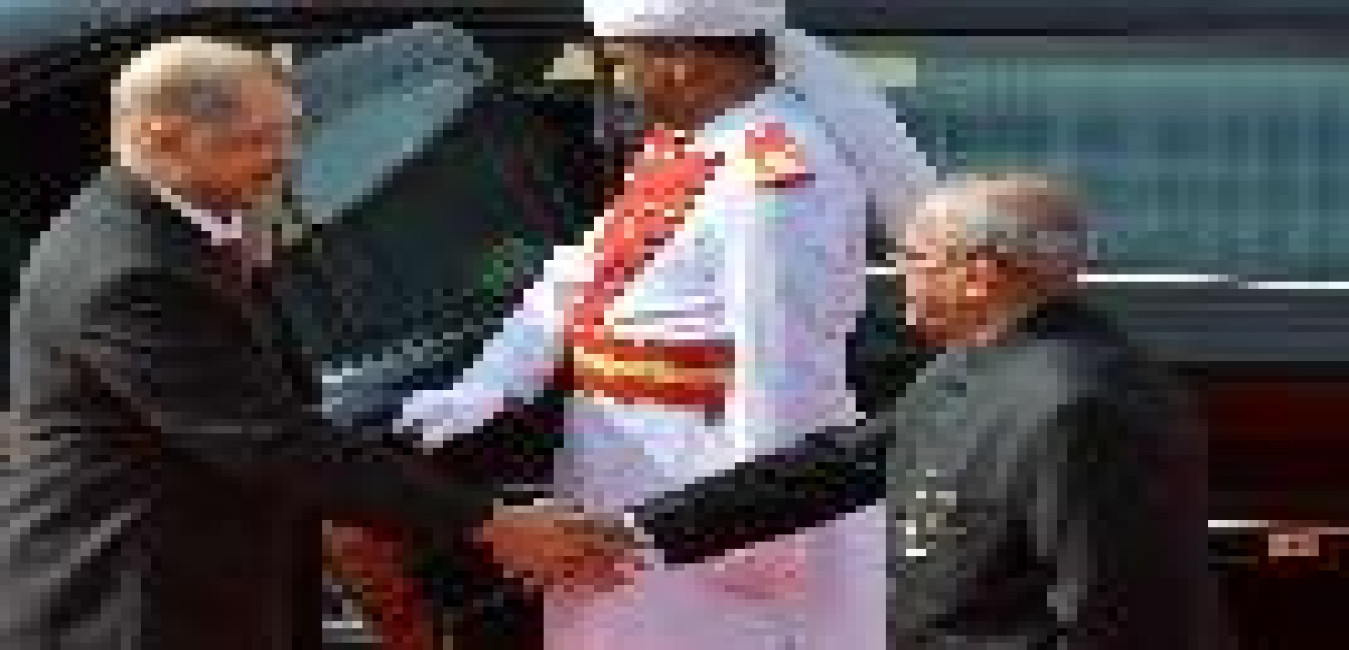 The President of India, Shri Pranab Mukherjee hosting a Banquet in honour of the President of the Republic of Seychelles, H.E. Mr. James Alix Michel, at Rashtrapati Bhavan, in New Delhi on August 26, 2015.
