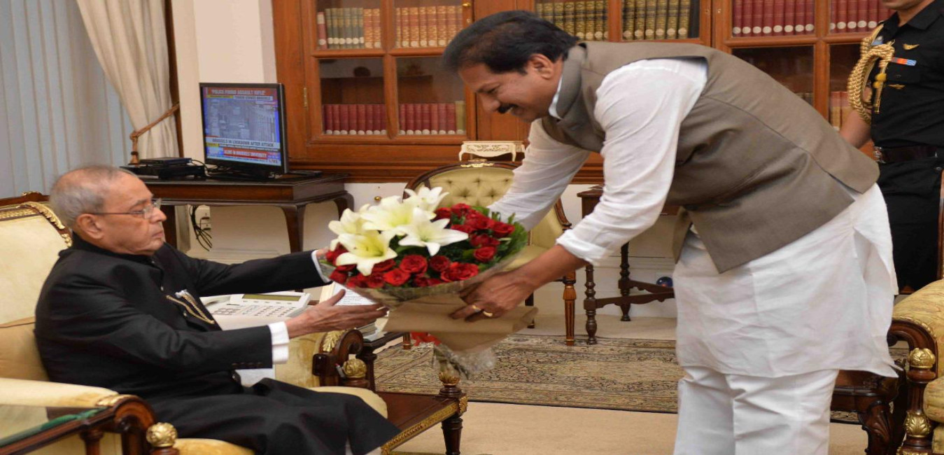 The President of India, Shri Pranab Mukherjee meeting with Shri Kona Raghupathi, MLA from Bapatla, Andhra Pradesh, at Rashtrapati Bhavan on March 22, 2016.