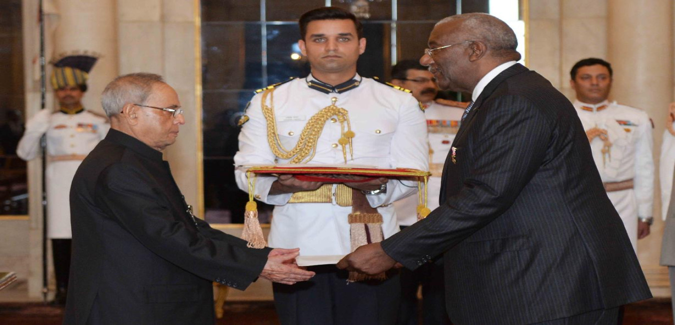 HE Mr. Lowell J. Mortimer, O.B.E. High Commissioner-Designate of Bahamas presenting his Credentials to the President of India, Shri Pranab Mukherjee, at Rashtrapati Bhavan, in New Delhi on April 30, 2015.