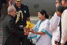 The President of India, Shri Pranab Mukherjee being received by the Chief Minister of West Bengal, Ms. Mamata Banerjee, on his Arrival, at Netaji Subhash Chandra Bose International Airport, Kolkata, in West Bengal on May 18, 2017.