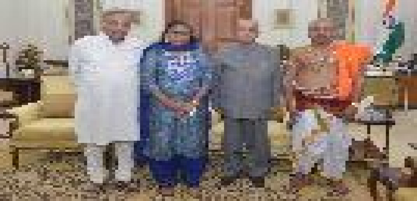 The President of India, Shri Pranab Mukherjee meeting with Shri Mani Shankar Aiyar, former Union Minister along with Swami Kotishwara from Swamimalai, at Rashtrapati Bhavan on May 08, 2017.