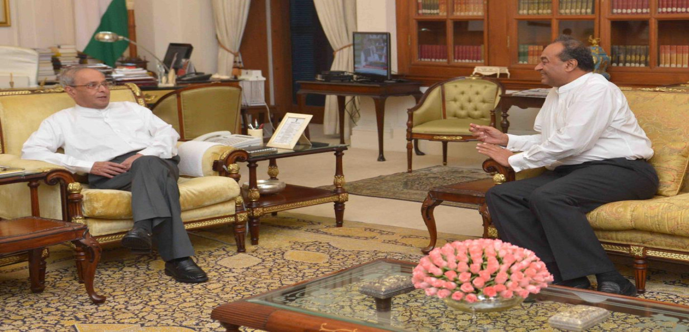 The President of India, Shri Pranab Mukherjee meeting with Shri Mukul Rohatgi, Attorney General of India, at Rashtrapati Bhavan on July 16, 2016.