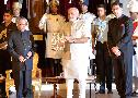 The President of India, Shri Pranab Mukherjee receiving the First Copy of the Indradhanush from the Prime Minister of India, Shri Narendra Modi at Rashtrapati Bhavan in New Delhi on July 25, 2014