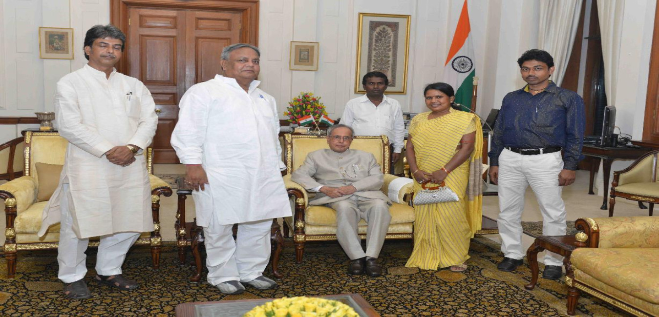 The President of India, Shri Pranab Mukherjee meeting with Shri Nepal Mahato, at Rashtrapati Bhavan, in New Delhi on June 24, 2015.