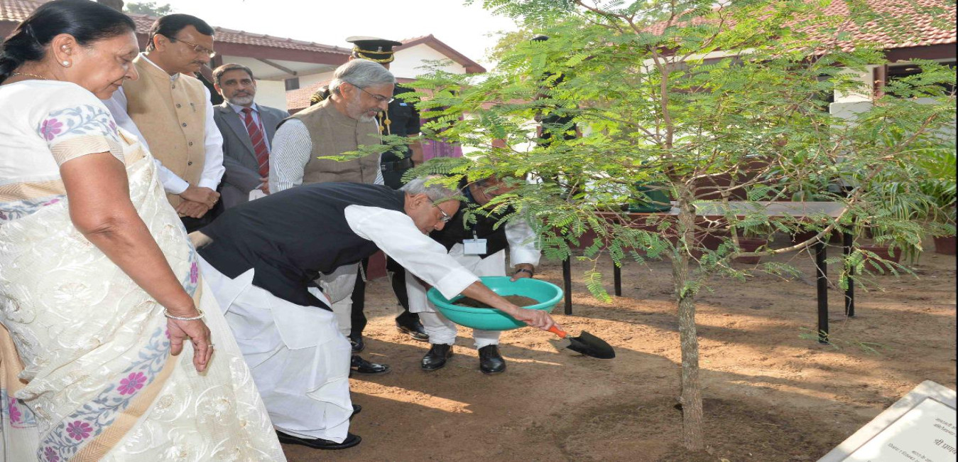 The President of India, Shri Pranab Mukherjee inaugurated a new Archives and Research Centre and planted a sapling, at Sabarmati Ashram, Ahmedabad, Gujarat on December 01, 2015.