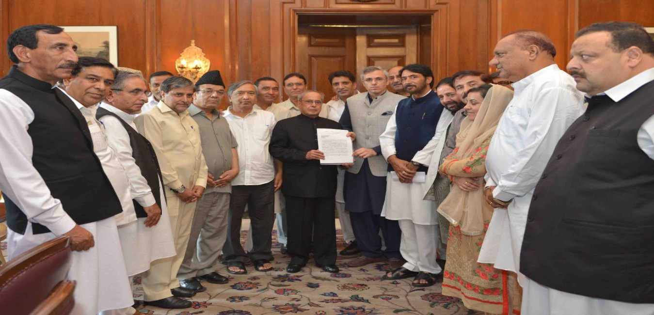 The President of India, Shri Pranab Mukherjee meeting with an all party delegation of MLAs from Jammu & Kashmir led by Shri Omar Abdullah, former Chief Minister of Jammu & Kashmir, at Rashtrapati Bhavan on August 20, 2016.
