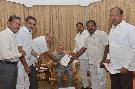 The President of India, Shri Pranab Mukherjee meeting with Shri Poola Ravinder, MLC with others, at Rashtrapati Nilayam, Bolarum, in Secunderabad on December 28, 2015.