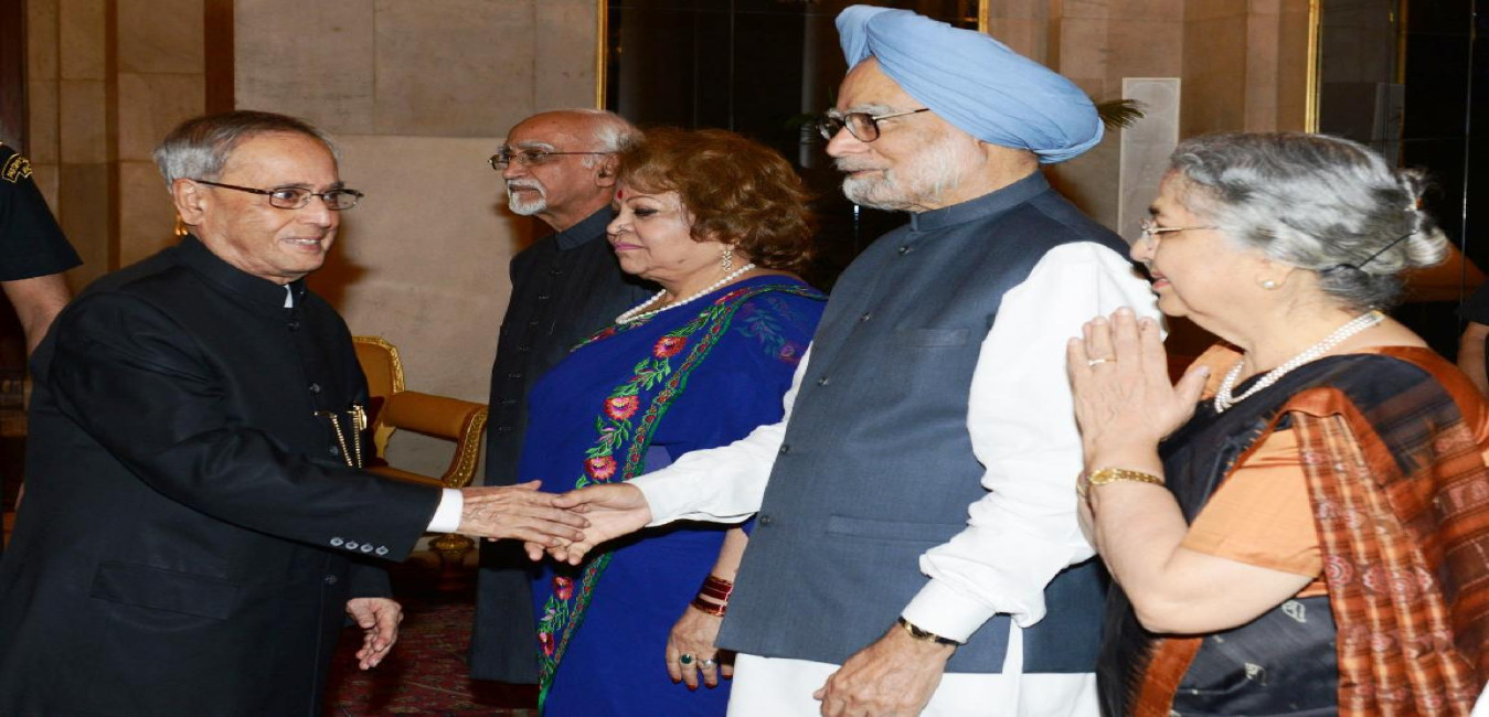 The President of India, Shri Pranab Mukherjee hosting a Dinner to the Chief Justice of India, Shri Rajendra Mal Lodha and the Former Chief Justice of India, Shri P Sathasivam at Rashtrapati Bhavan in New Delhi on April 27, 2014