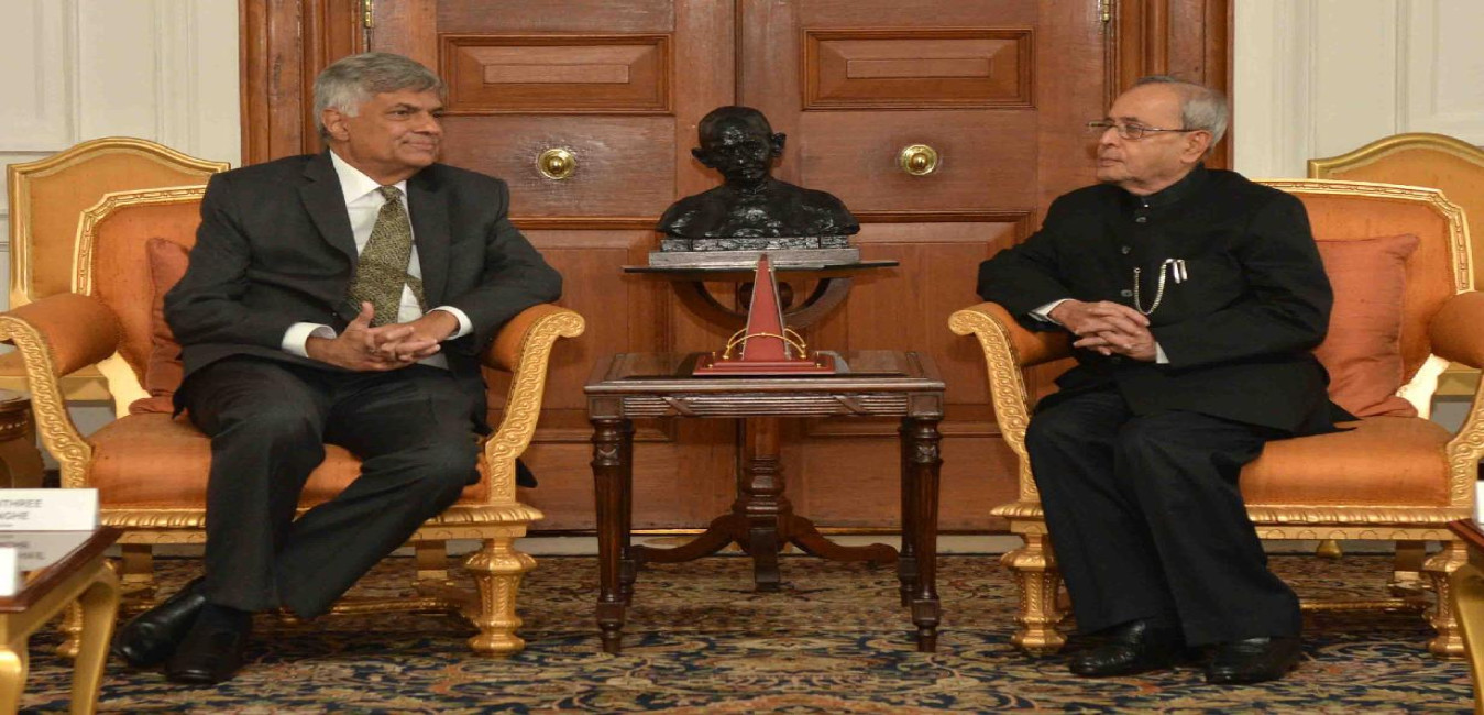 The Prime Minister of the Democratic Socialist Republic of Sri Lanka, Mr. Ranil Wickremesinghe and Prof. (Mrs.) Maithree Wickremesinghe calling on the President of India, Shri Pranab Mukherjee, at Rashtrapati Bhavan, in New Delhi on September 16, 2015.