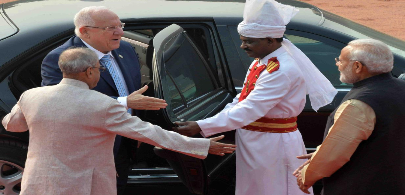 The President of India, Shri Pranab Mukherjee receiving the President of Israel, H.E. Mr. Reuven Rivlin and Mrs. Nechama Rivlin, during Ceremonial Reception, at the Forecourt of Rashtrapati Bhavan on November 15, 2016.