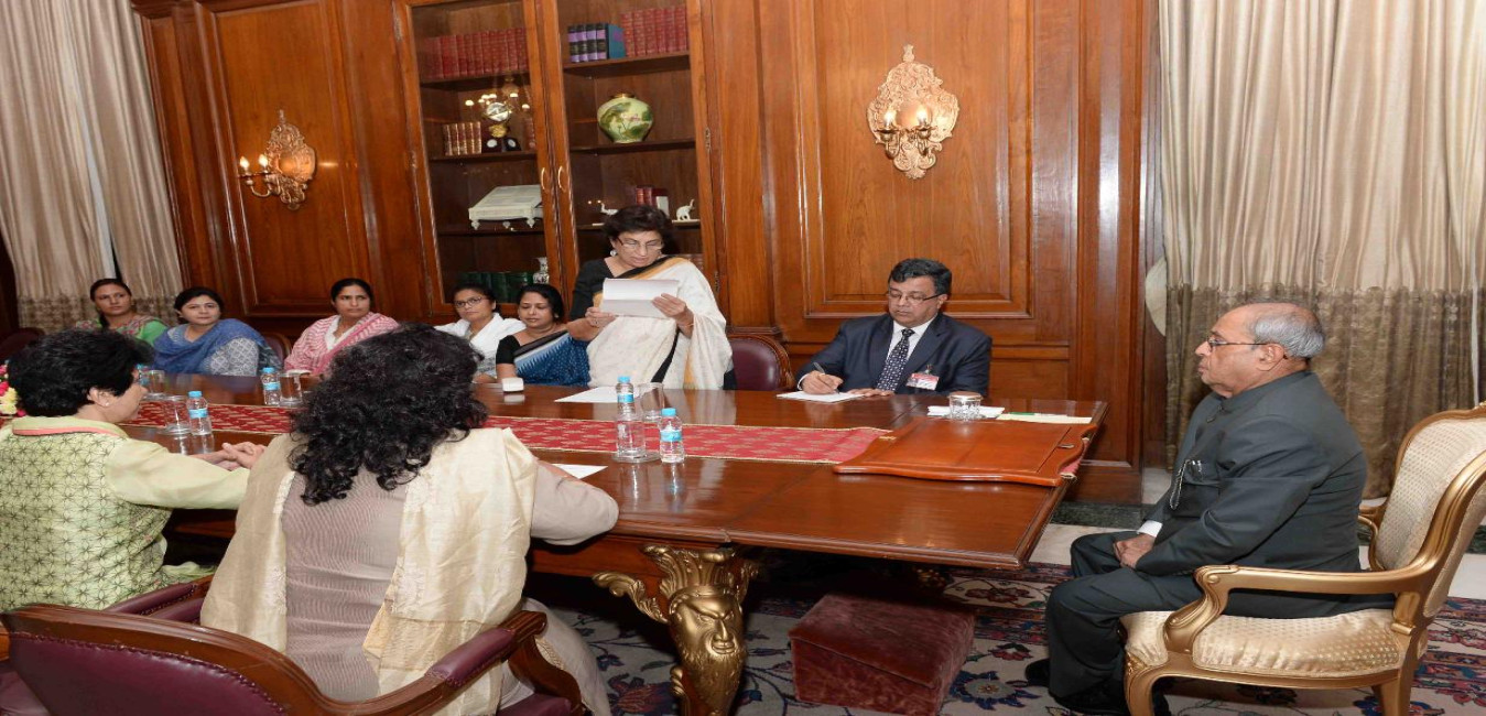 The President of India, Shri Pranab Mukherjee meeting with Smt. Shobha Oza, President, All India Mahila Congress along with a delegation of Women Congress MPs (Lok Sabha & Rajya Sabha) and leaders of the Congress Party, at Rashtrapati Bhavan on July 27, 2016.