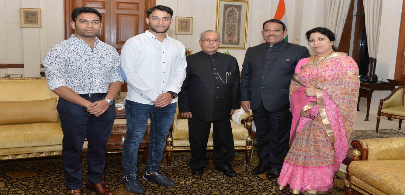 The President of India, Shri Pranab Mukherjee meeting with Shri Shrirang Appa Barne, MP (LS) alongwith his wife and sons, at Rashtrapati Bhavan on December 01, 2016.