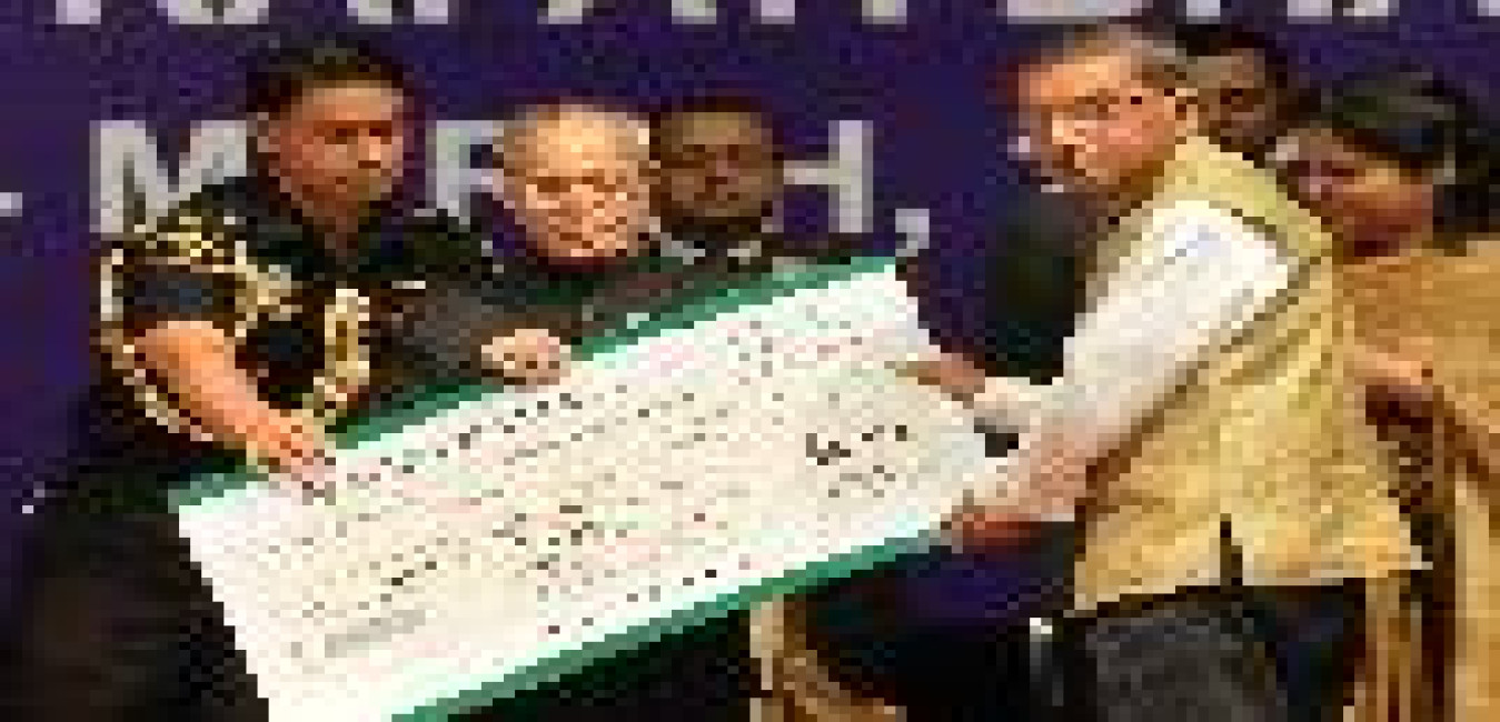 The President of India, Shri Pranab Mukherjee presenting the Visitor s Award - 2016 for Best University to Tezpur University at Rashtrapati Bhavan Auditorium on March 14, 2016.
