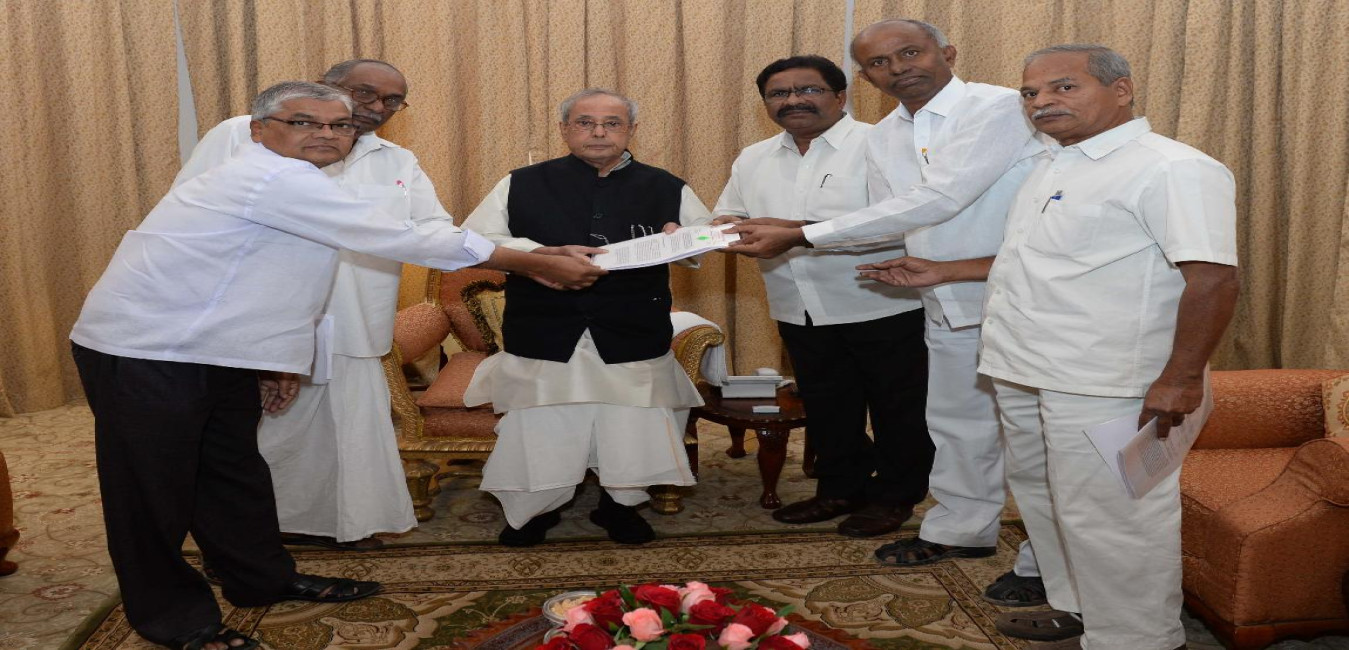 The President of India, Shri Pranab Mukherjee meeting with Shri Sunnam Rajaiah, MLA , CPIM alongwith CPIM members & Telangana Handloom Weavers, at Rashtrapati Nilayam, Bolarum, in Secunderabad on December 27, 2016.