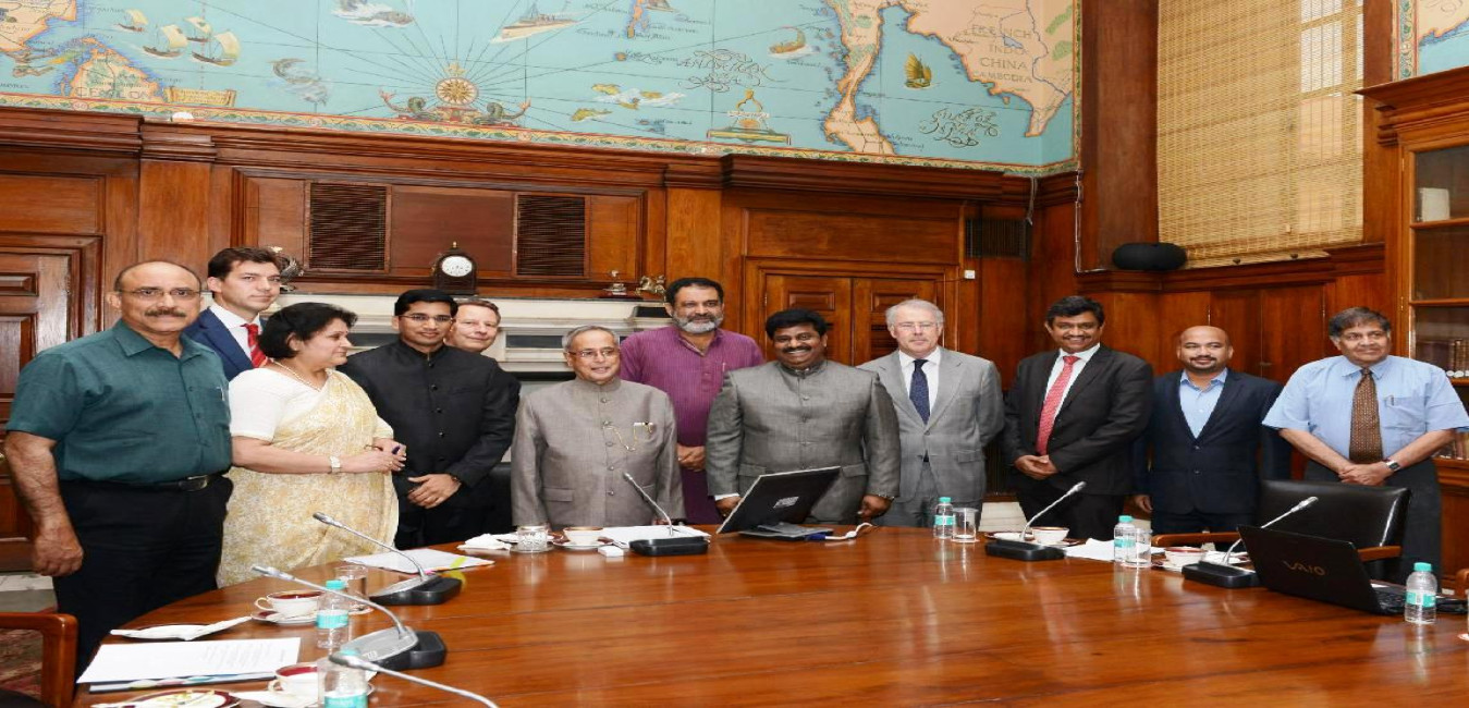 The President of India, Shri Pranab Mukherjee receiving the First Copy of Q S Asia Pacific University Rankings 2014 from Shri T V Mohandas Pai, Chairman, Indian Centre for Assessment and Accreditation, Mr John O Leary, Member, Executive Board of Q S World University Ranking at Rashtrapati Bhavan in New Delhi on May 12, 2014