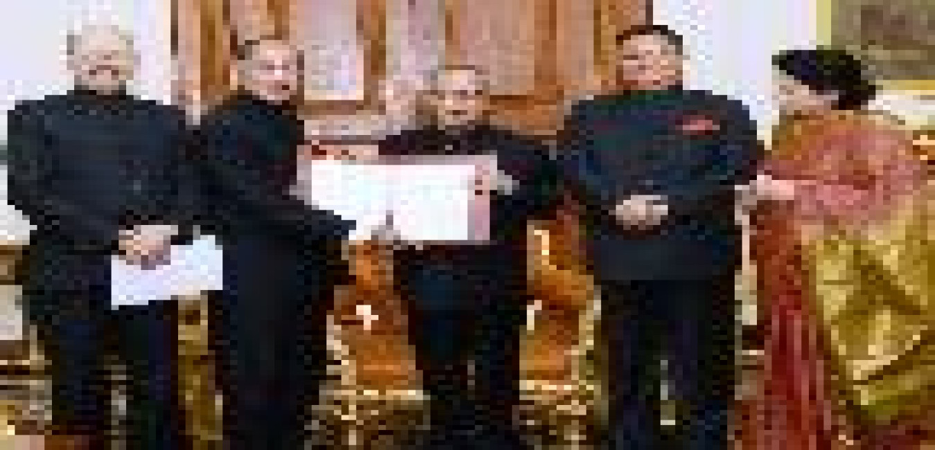 The Chief Election Commissioner of India, Shri V S Sampath, along with Election Commissioners, Shri H S Brahma and Dr Nasim Zaidi submitting the Report of 16th Lok Sabha Election, 2014 to the President of India, Shri Pranab Mukherjee at Rashtrapati Bhavan in New Delhi on May 18, 2014