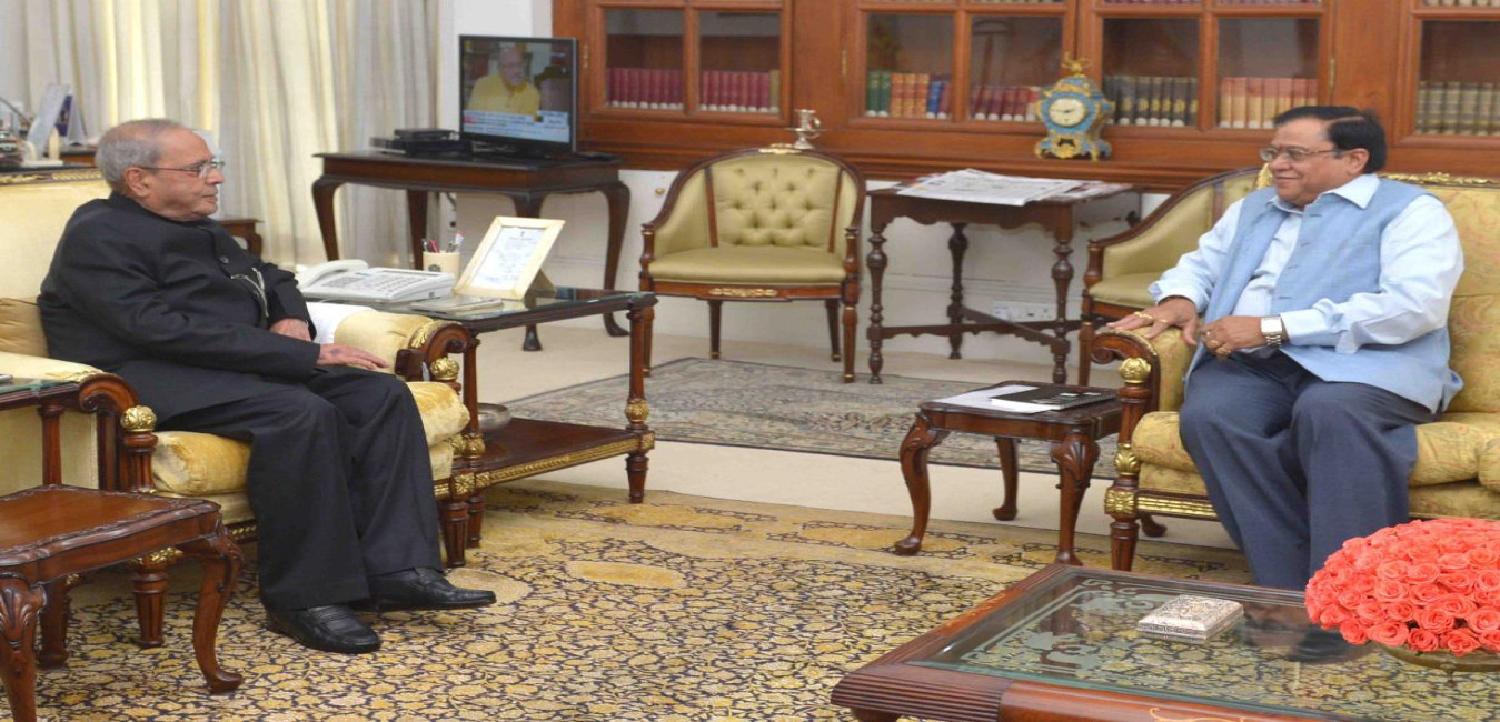 The President of India, Shri Pranab Mukherjee meeting with Dr. V.K. Saraswat, Member, Niti Aayog & Chancellor, Jawaharlal Nehru University, at Rashtrapati Bhavan on May 27, 2017.