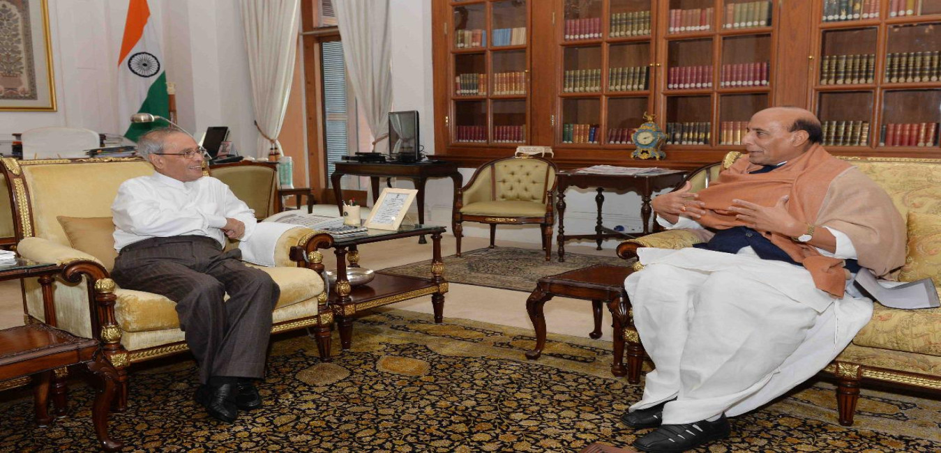 The President of India, Shri Pranab Mukherjee meeting with Shri Rajnath Singh, Minister of Home Affairs, at Rashtrapati Bhavan on January 25, 2016.