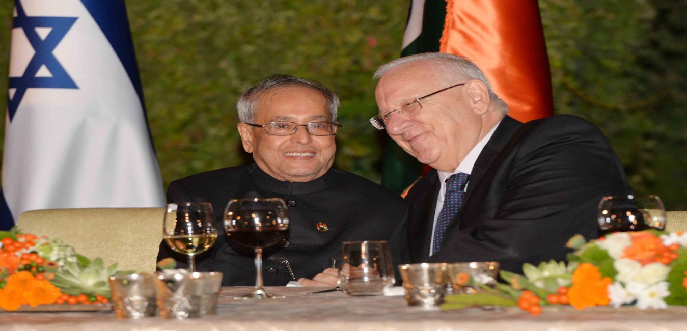 The President of India, Shri Pranab Mukherjee during the Banquet hosted by the President of Israel, Mr. Reuven Rivlin at President House, Jerusalem in Israel on October 14, 2015.