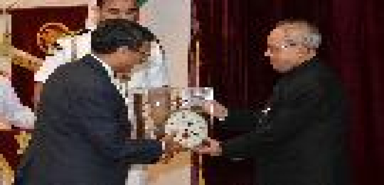 The Ambassador-Designate of Nepal, HE Mr. Deep Kumar Upadhyay presenting his Credentials to the President of India, Shri Pranab Mukherjee, at Rashtrapati Bhavan, in New Delhi on April 30, 2015.