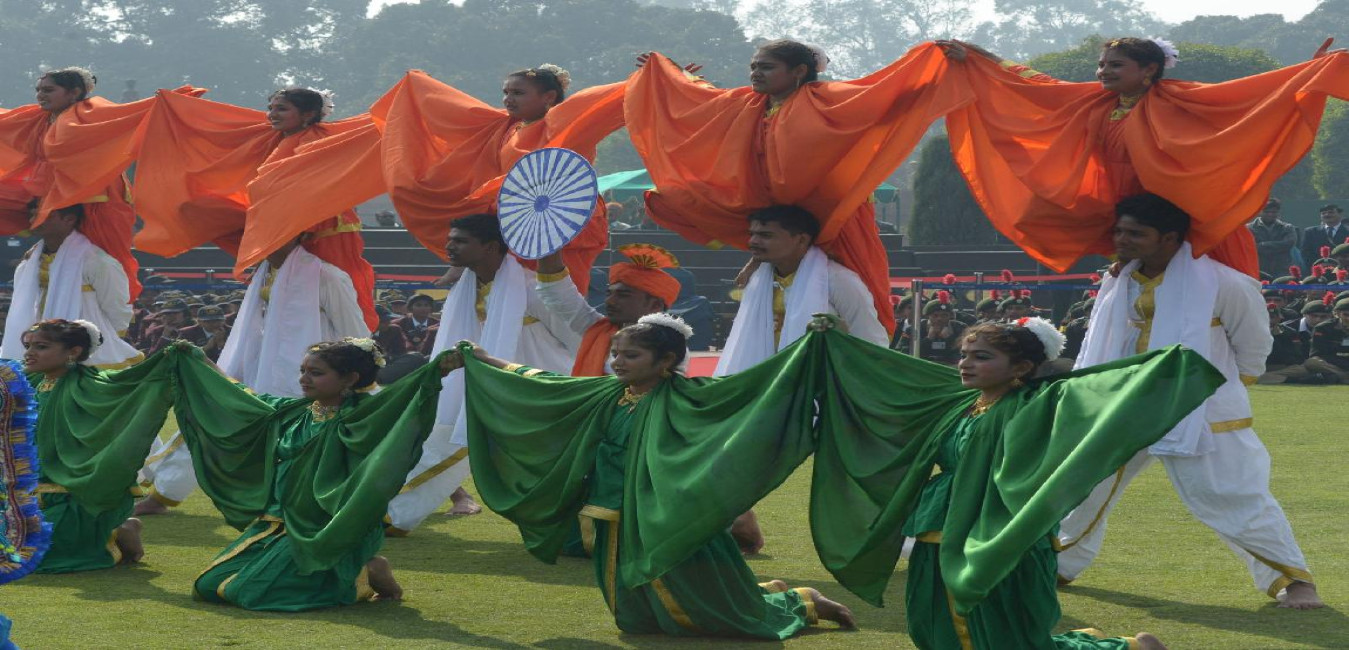 The President of India, Shri Pranab Mukherjee interacting with the Tribal Guests, Tableaux Artistes, Tractor Drivers, NSS Volunteers and NCC Cadets and Officials (Participants of the Republic Day Parade) at Mughal Gardens of Rashtrapati Bhavan in New Delhi on Jan 27, 2014
