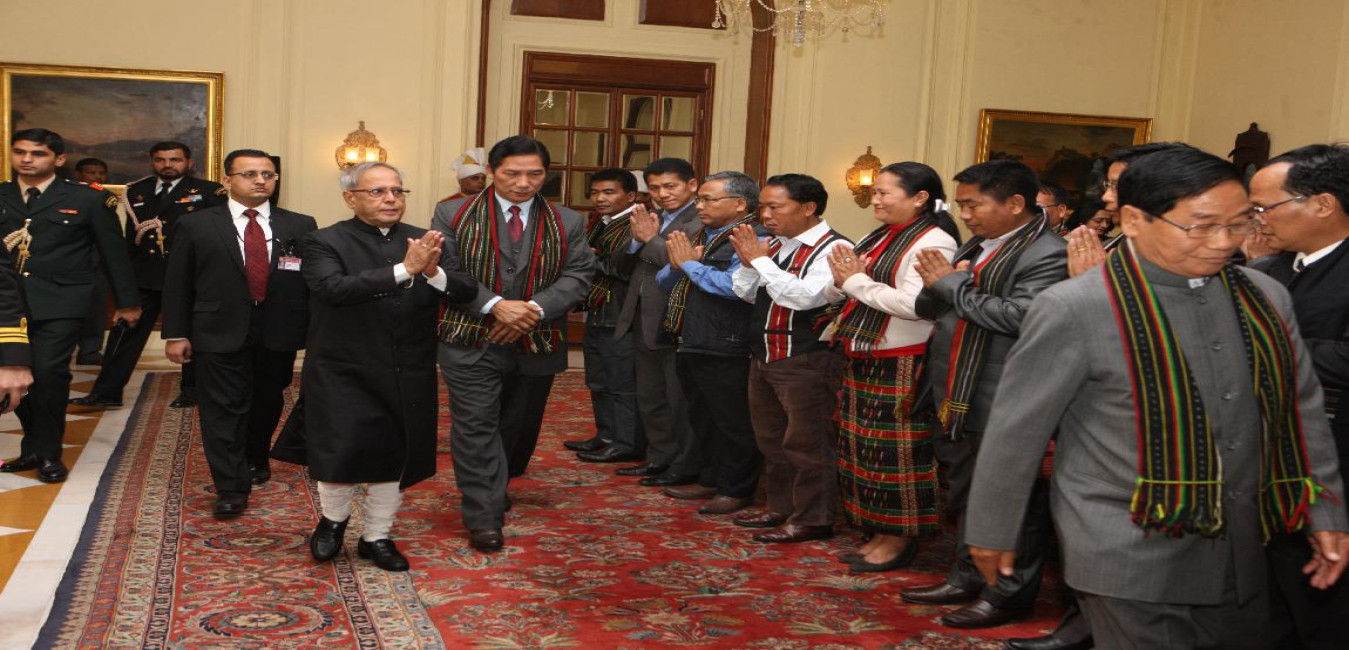 The President of India, Shri Pranab Mukherjee Meeting with His Eminence Cardinal Fernando Filoni Special Envoy of His Holiness Pope Benedict XVI with others on Feb 15, 2013