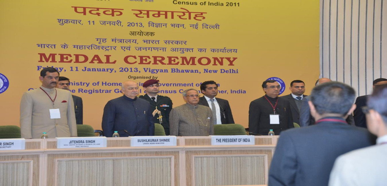 The President of India, Shri Pranab Mukherjee Presenting the Census Medals on 11 Jan 2013