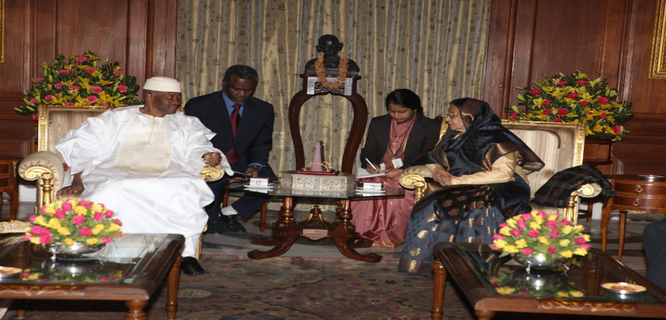 The President of the Republic of Mali, HE Mr Amadou Toumani Toure and his wife Mrs Toure Lobbo Ttraore calling on the President of India, Smt Pratibha Devisingh Patil at Rashtrapati Bhavan in New Delhi on Jan 11, 2012