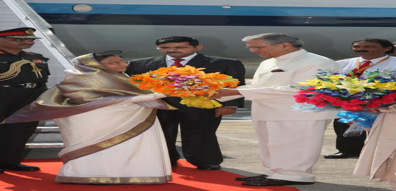 The President of India, Smt Pratibha Patil during arrival at Police Line Helipad of Lucknow in Uttar Pradesh on Nov 02, 2011