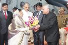 The President of India, Smt Pratibha Patil being welcomed by the Governor of Uttar Pradesh, Shri B L Joshi and the Chief Minister of Uttar Pradesh, Mayawati at Lucknow Airport in Uttar Pradesh on Nov 02, 2011