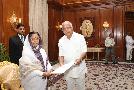 The President of India, Smt Pratibha Devisingh Patil interacting with the Chief Minister of Karnataka, Shri B S Yeddyurappa and others at Rashtrapati Bhavan in New Delhi on Aug 09, 2010