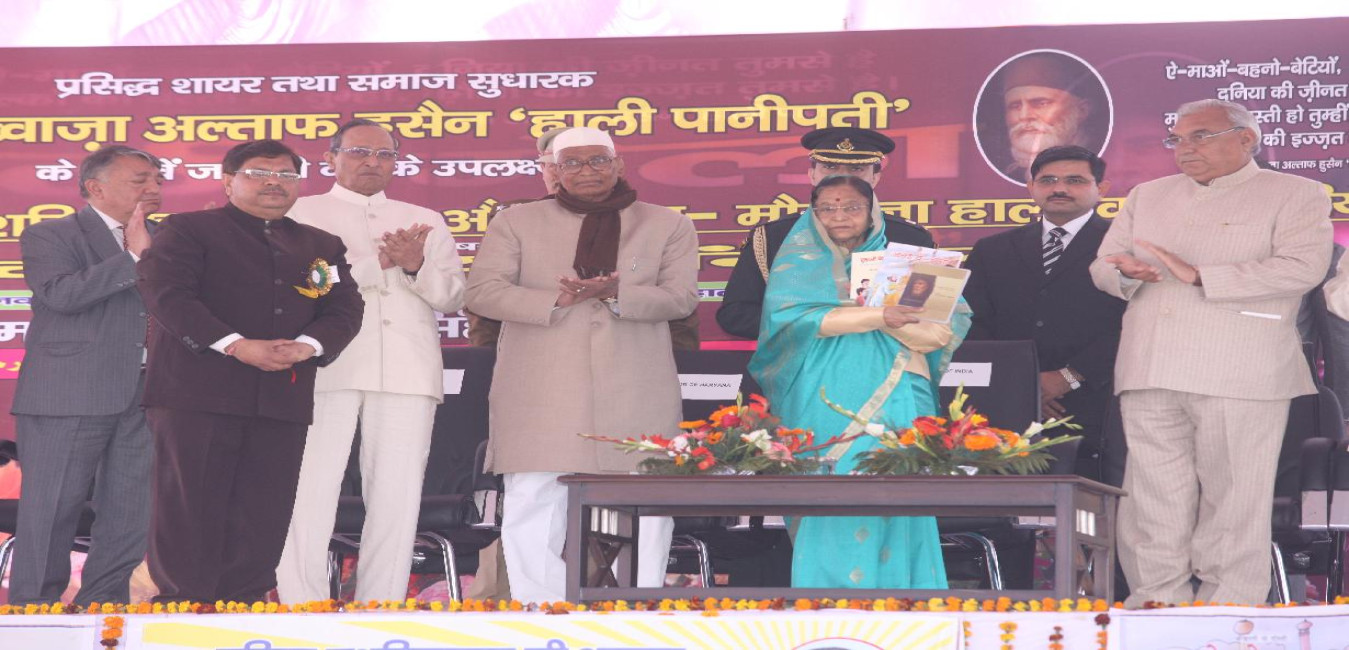 The President of India, Smt Pratibha Devisingh Patil inaugurating the International Symposium on the theme, 'Empowerment of Women and the Girl Child' and receiving the first copies of books and Compact Discs on Maulana Hali from the Chief Minister of Haryana, Shri Bhupinder Singh Hooda at Panipat in Haryana on Jan 14, 2012