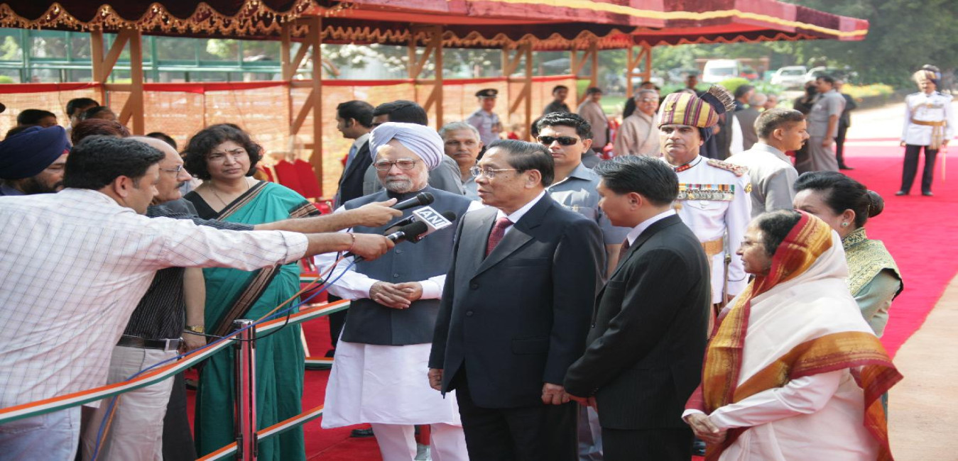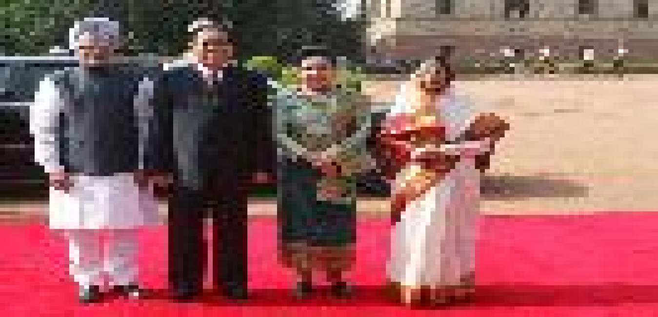 The President of India, Smt Pratibha Devisingh Patil at the Ceremonial Reception of the President of the Lao People's Democratic Republic, His Excellency Mr Choummaly Sayasone at the Forecourt of Rashtrapati Bhavan in New Delhi on Aug 27, 2008