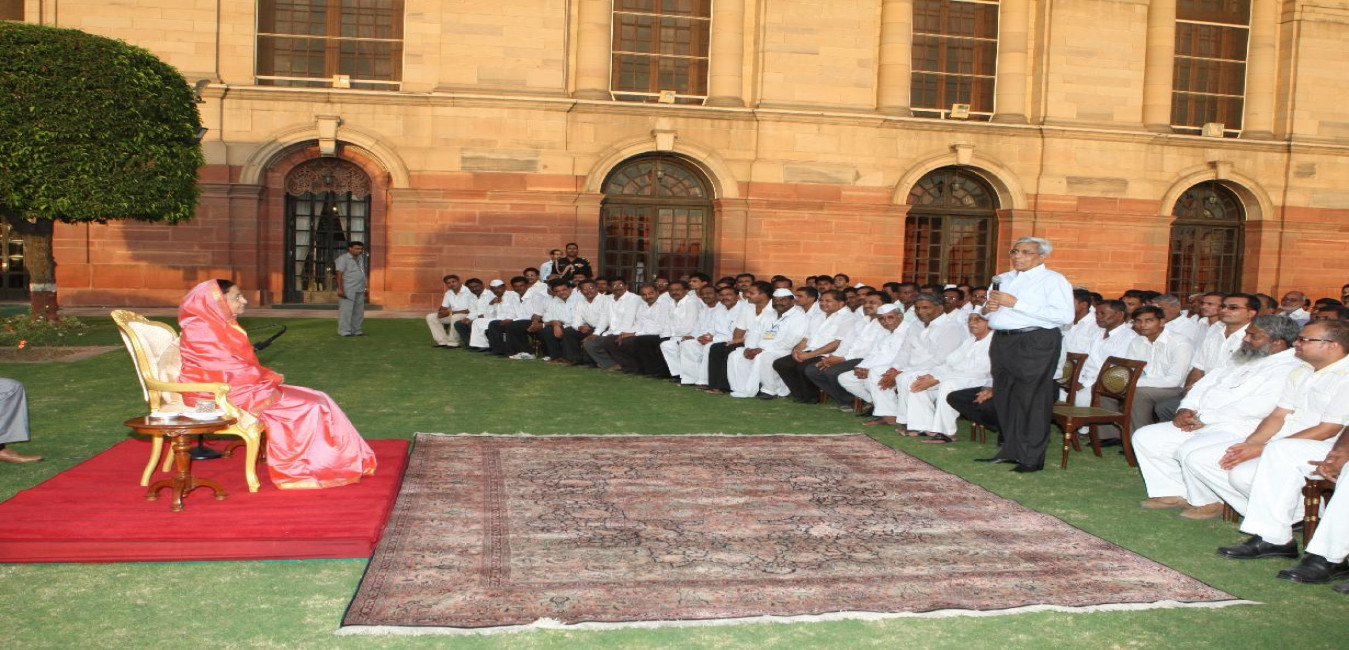 The President of India, Smt Pratibha Devisingh Patil interacting with Shri Ishwarlal Jain and others at Rashtrapati Bhavan in New Delhi on July 26, 2010