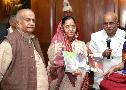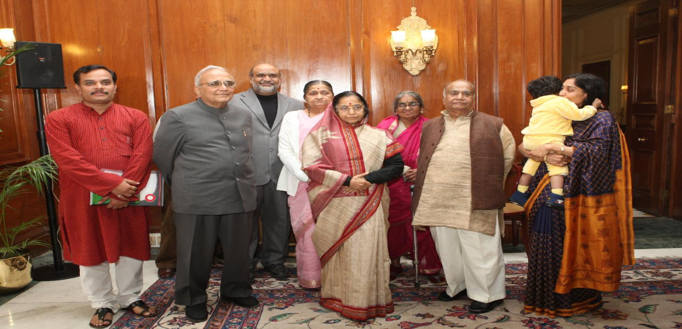 The President of India Smt Pratibha Devisingh Patil with Shri K W Tare of Achlapur-Amravati for presenting a Book with others at Rashtrapati Bhavan in New Delhi on Dec 11, 2007