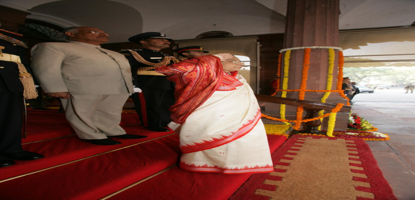 The President of India, Smt Pratibha Devisingh Patil paying floral tributes at the Samadhi of the Former Prime Minister of India, Late Smt Indira Gandhi on her 93rd Birth Anniversary at Shakti Sthal in New Delhi on Nov 19, 2010