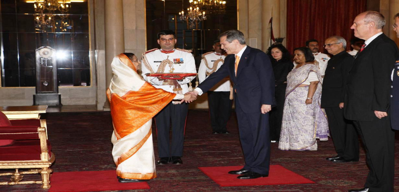 The Ambassador-Designate of Federal Republic of Germany, HE Mr Michael Steiner presenting his Credentials to the President of India, Smt Pratibha Devisingh Patil at Rashtrapati Bhavan in New Delhi on July 13, 2012