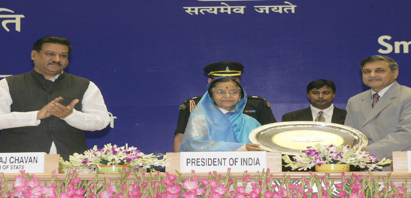 The President of India, Smt Pratibha Devisingh Patil presenting the Sangeet Natak Akademi Award for the Year 2008 at Vigyan Bhavan in New Delhi on July 14, 2009