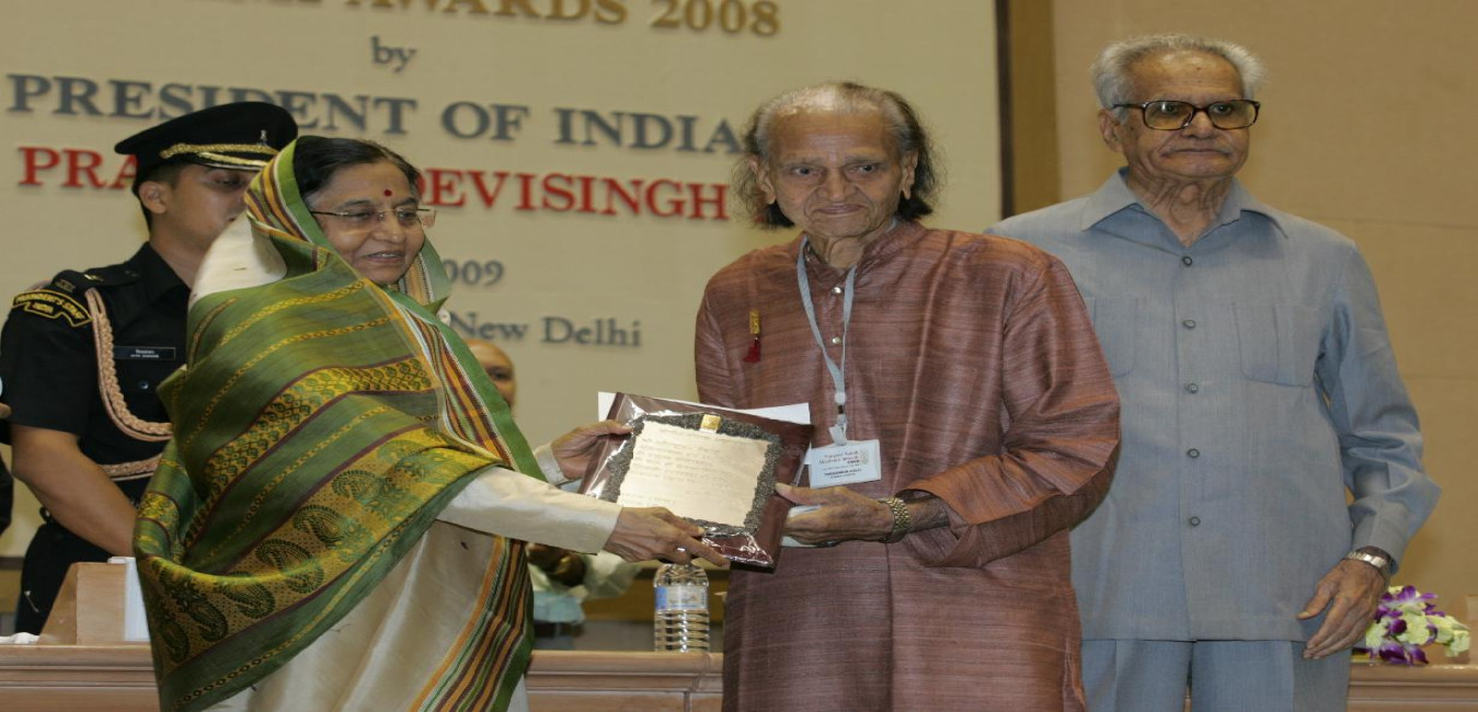 The President of India, Smt Pratibha Devisingh Patil presenting the Sangeet Natak Akademi Award for the Year 2008 at Vigyan Bhavan in New Delhi on July 14, 2009