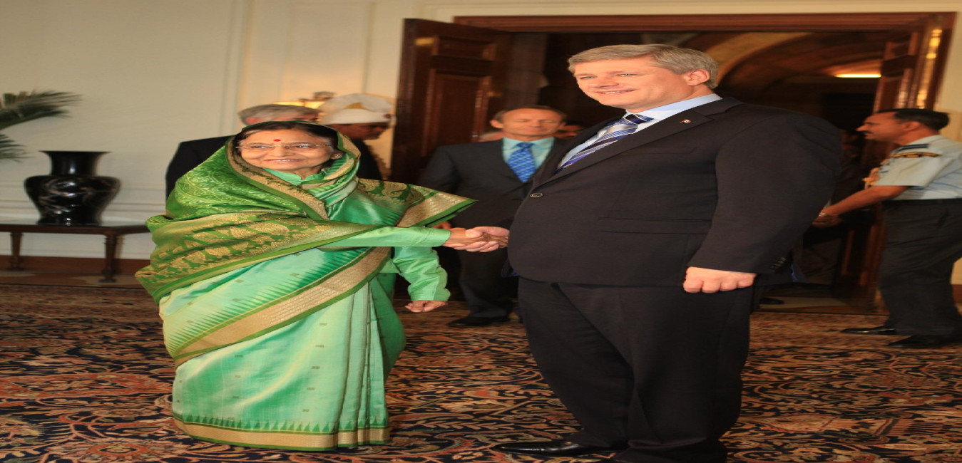 The Prime Minister of Canada, Mr Stephen Harper calling on the President of India, Smt Pratibha Devisingh Patil at Rashtrapati Bhavan in New Delhi on Nov 17, 2009
