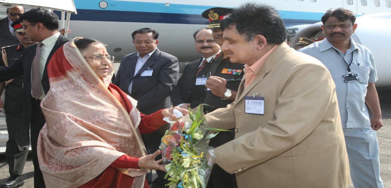 The President of India, Smt Pratibha Devisingh Patil arriving at Bagdogra Airport in Darjeeling, West Bengal on April 14, 2010