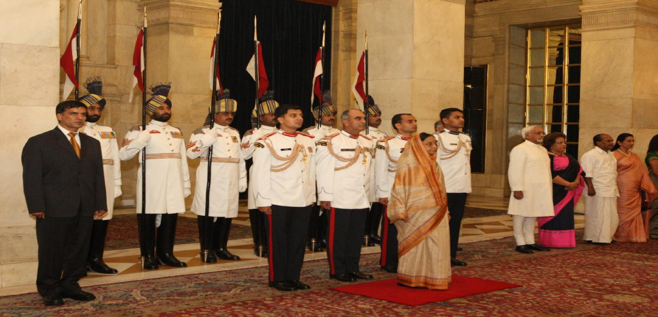 The President of India, Smt Pratibha Devisingh Patil inspecting the Guard of Honour at Shillong Airport in Meghalaya on Oct 22, 2008