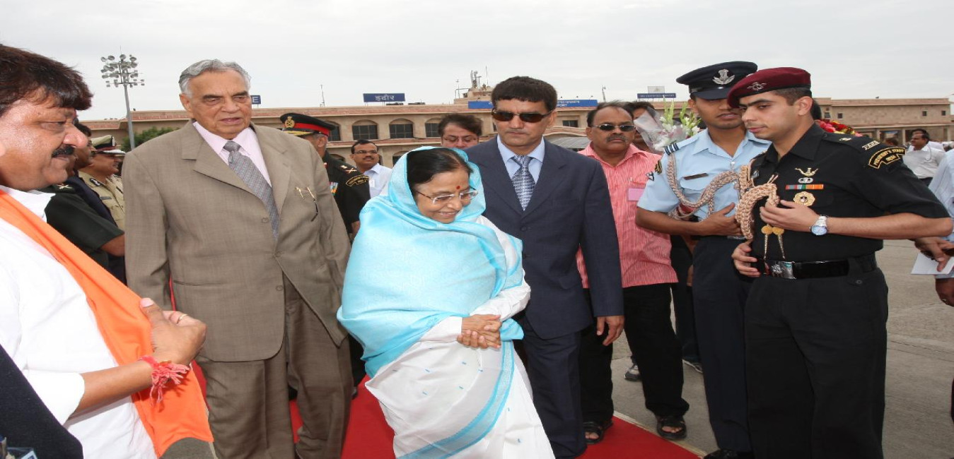 The President of India, Smt Pratibha Devisingh Patil arriving at Gwalior Airport in Madhya Pradesh on June 30, 2008