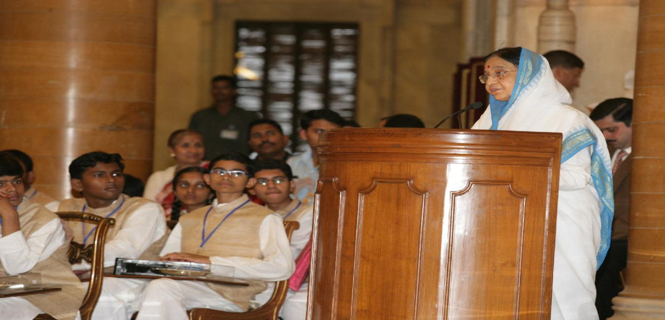 The President of India, Smt Pratibha Devisingh Patil presenting the National Bal Shree Award Year 2007 at Durbar Hall of Rashtrapati Bhavan in New Delhi on June 10, 2008