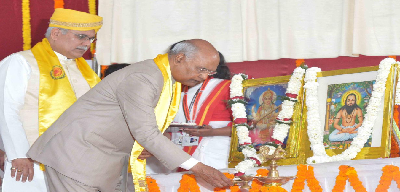 The President of India, Shri Ram Nath Kovind gracing the convocation of Guru Ghasidas Vishwavidyalaya, at Bilaspur, in Chhattisgarh on March 02, 2020.