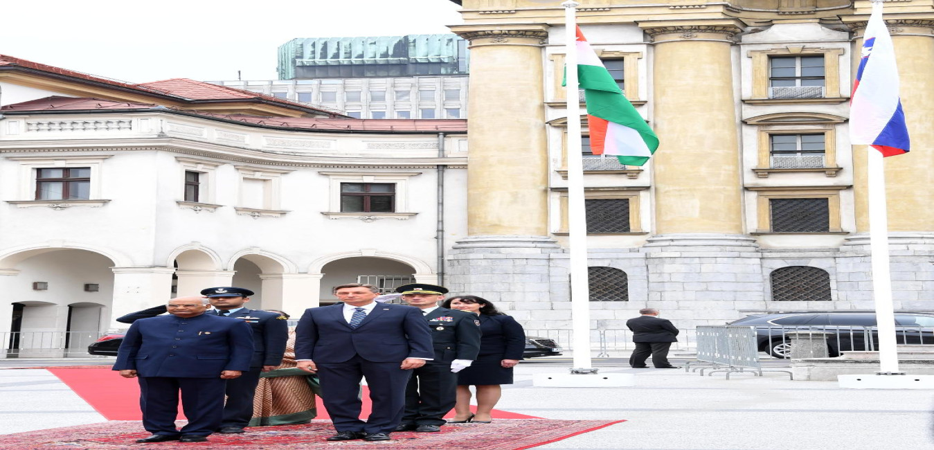The President of India, Shri Ram Nath Kovind accorded a ceremonial welcome by the President of Slovenia, H.E. Mr. Borut Pahor, at Congress Square, in Ljubljana, Slovenia on September 16, 2019.