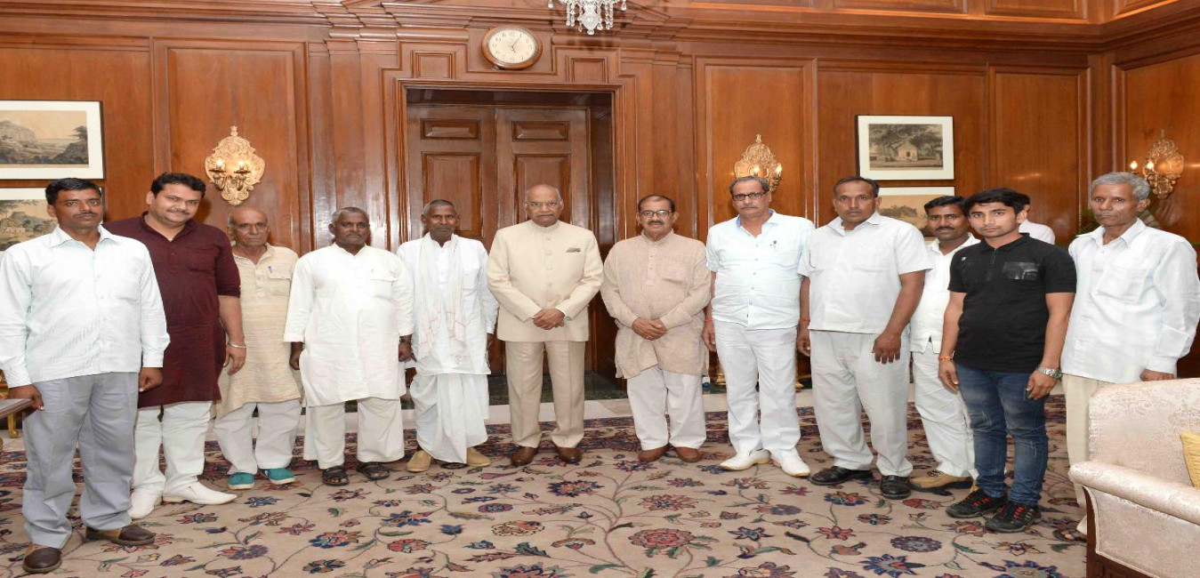Shri Chakki Lal, Ex-MLA & Member, National Council, BJP alongwith Shri Awadhesh Singh, Ex-Zilla President, BJP Auraiya and others meeting with the President of India, Shri Ram Nath Kovind, at Rashtrapati Bhavan on August 31, 2017.