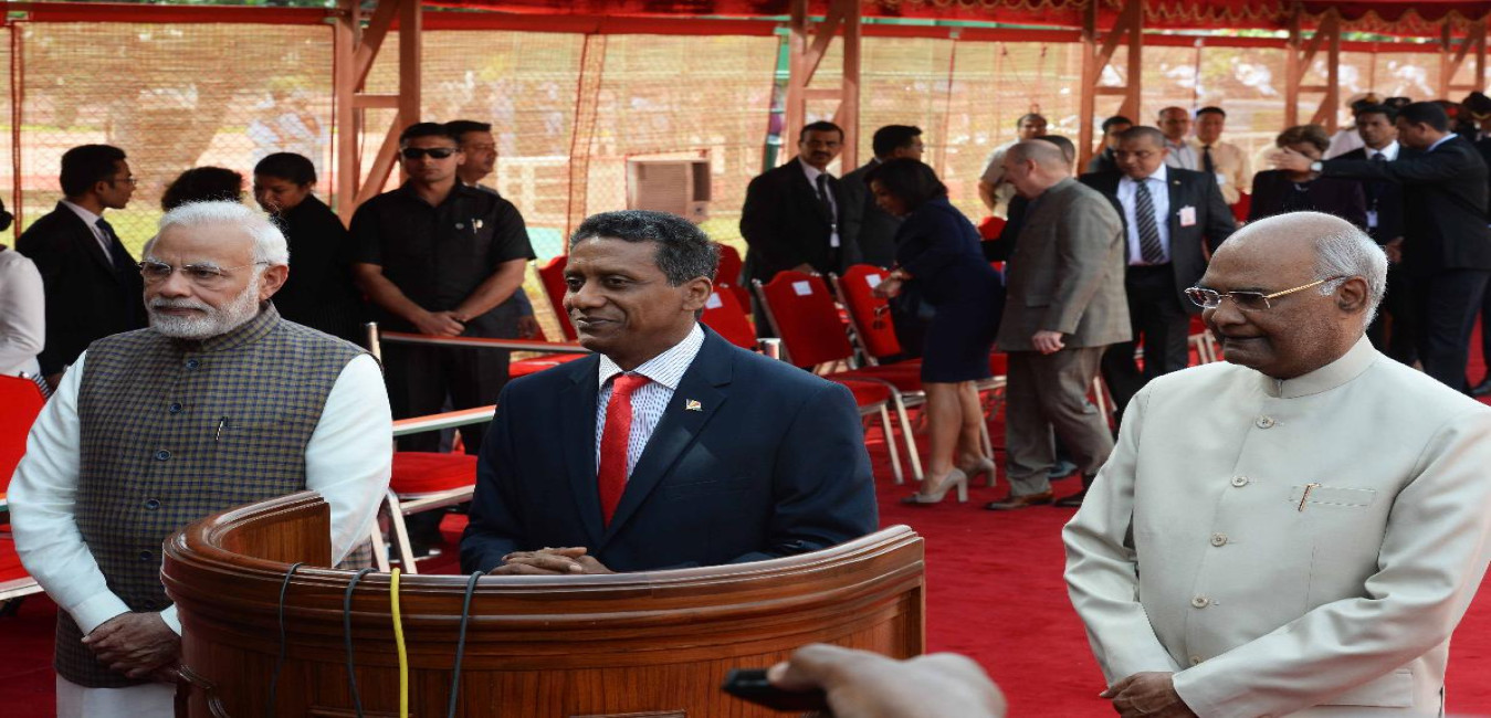 The President of India, Shri Ram Nath Kovind receives the President of the Republic of Seychelles, H.E. Mr. Danny Antoine Rollen Faure, at the ceremonial reception, at Rashtrapati Bhavan on June 25, 2018.